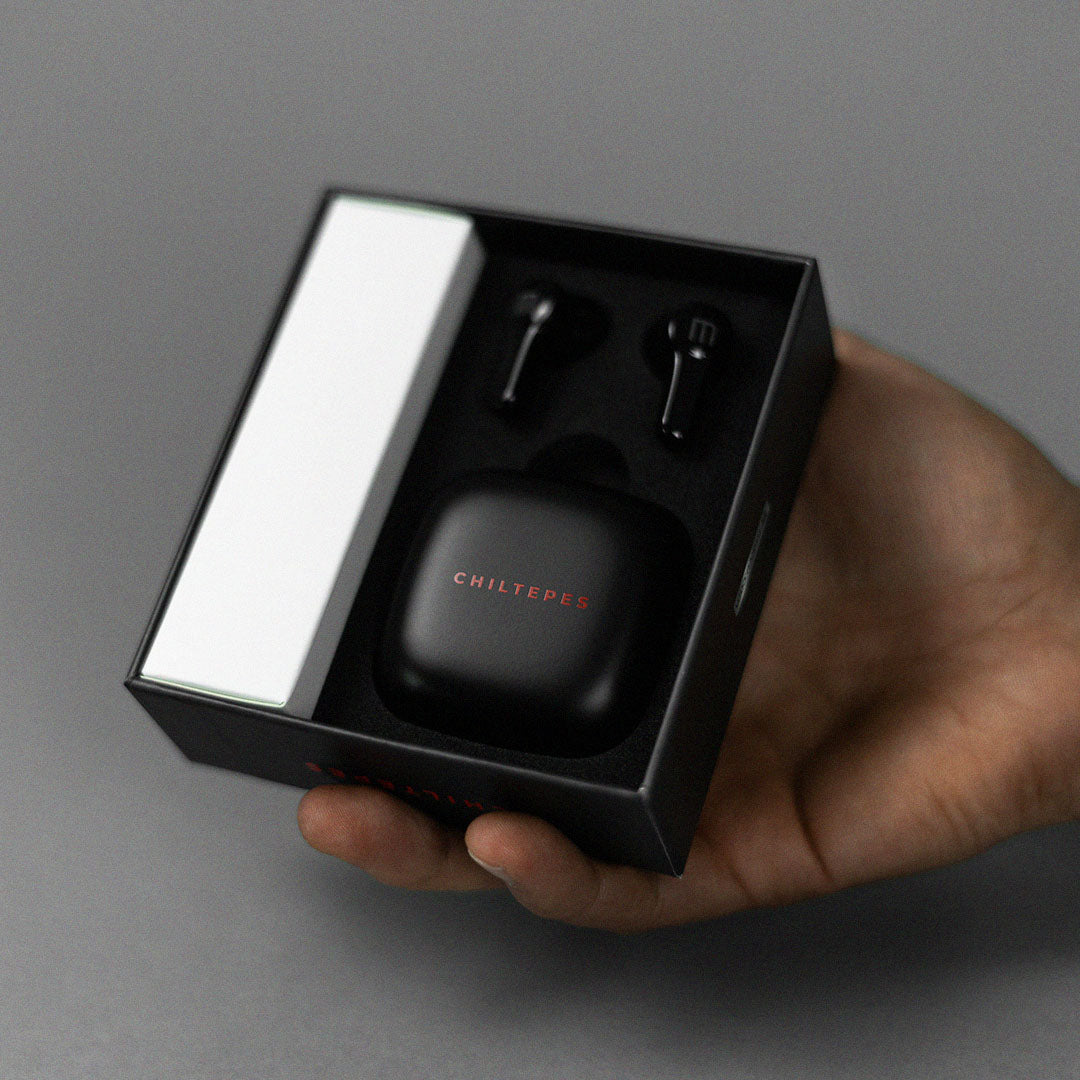 1 par de auriculares Chiltepes (1 izquierdo y 1 derecho) Almohadillas con memory foam negras (3 pares, distintos tamaños) Almohadillas de silicón negro (3 pares, distintos tamaños, viene instalada la mediana en los auriculares) Almohadillas de silicón rojo (3 pares, distintos tamaños) Cable de carga Tipo C de 50cms de largo Cápsula de carga portátil Manual