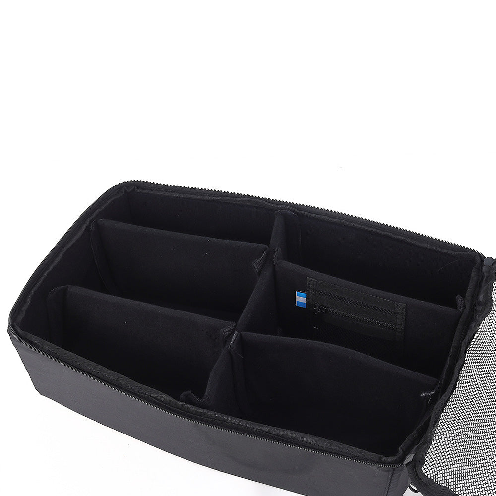 Organizador semi rígido y semi acolchado, tapa superior de zipper con mesh.