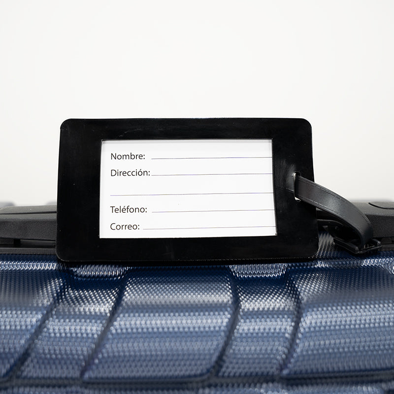 - Incluimos con cada maleta VIAJE un TAG con un espacio en el que puedes poner tus datos de contacto, por si la extravías.